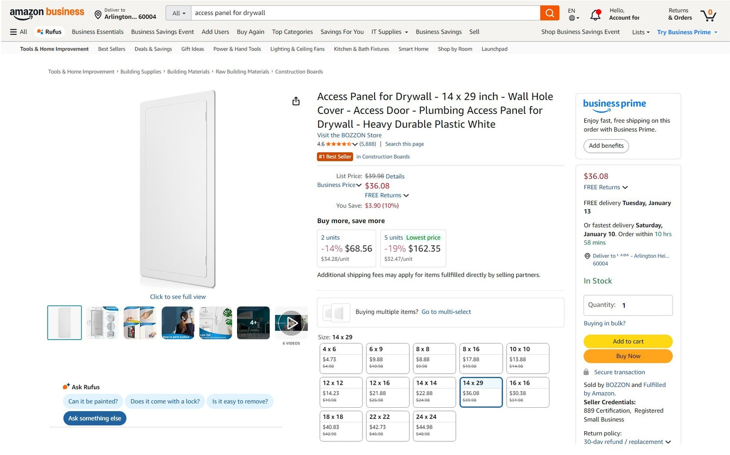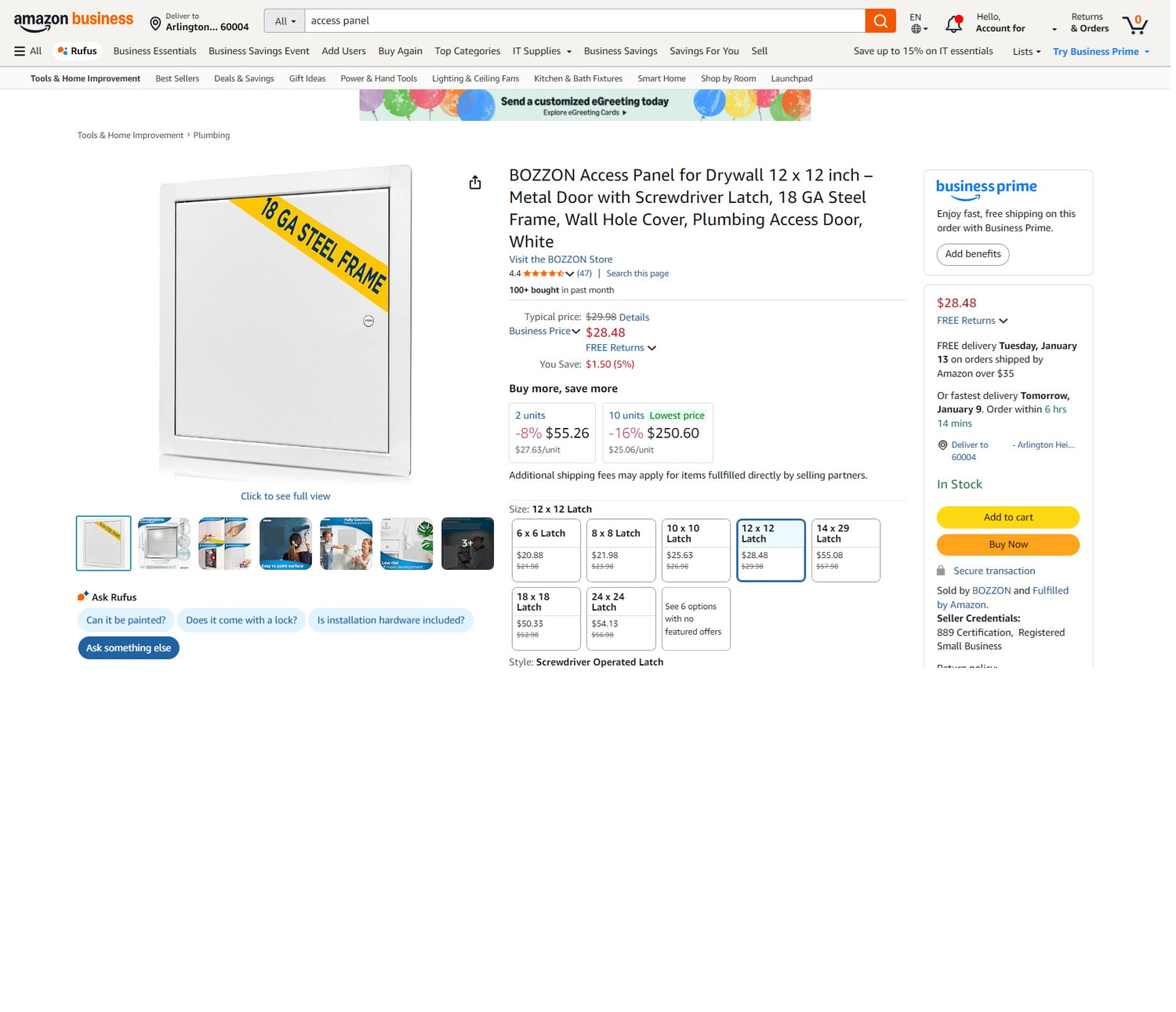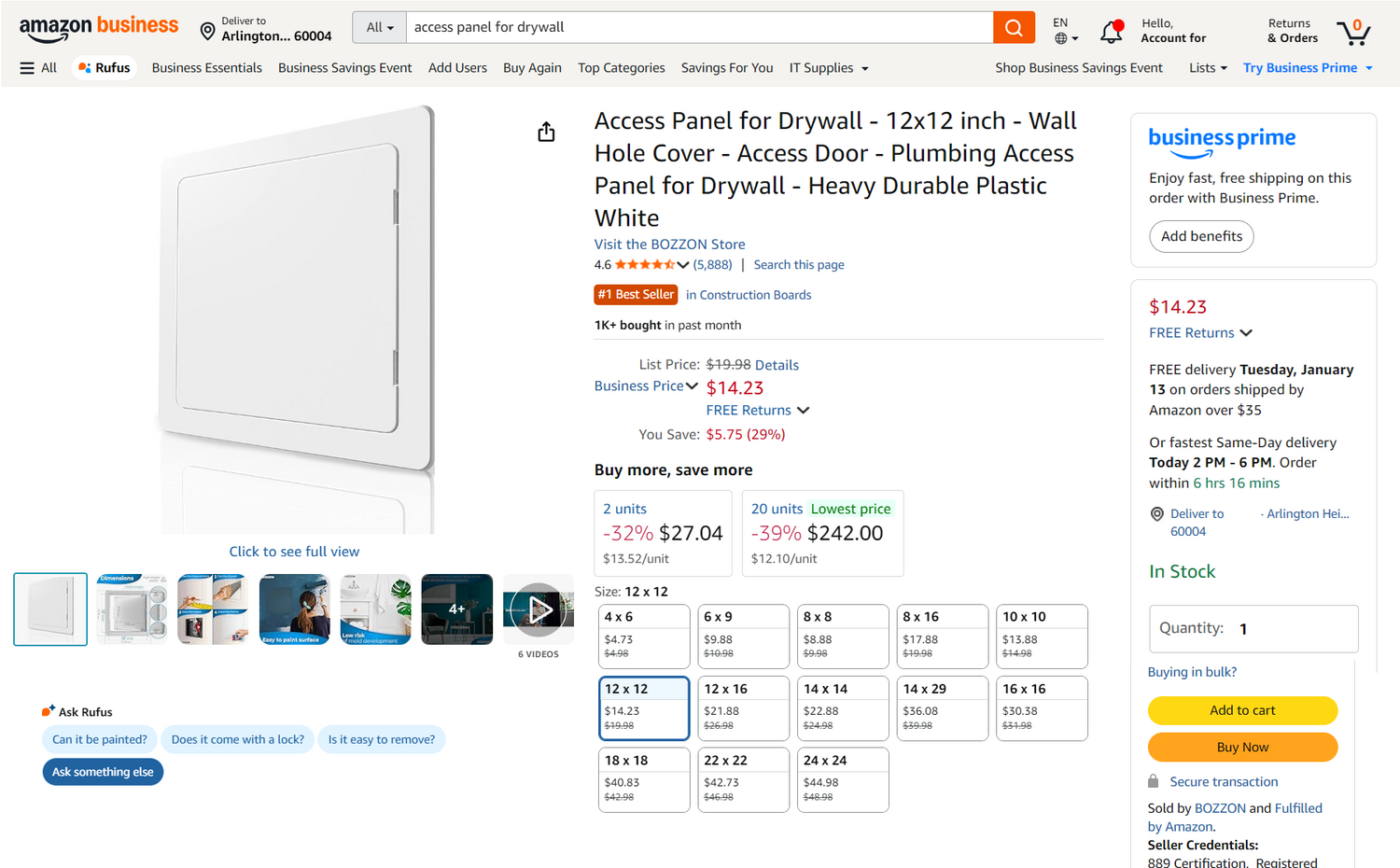 Over 20,000 access panels are stocked in Amazon fulfillment centers, ensuring reliable availability for any project size
