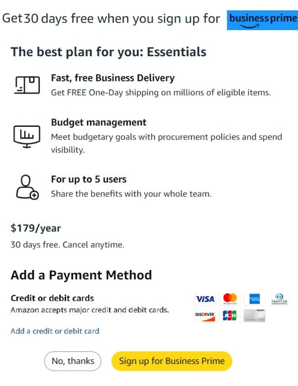 You may choose to add Business Prime later to unlock extra benefits, but it is not required to start buying as a business