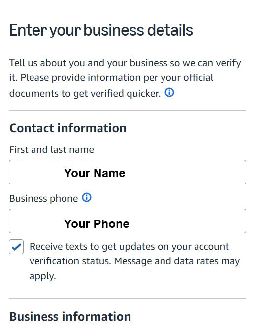 Accurate information helps Amazon verify your business faster and complete this step of account approval smoothly