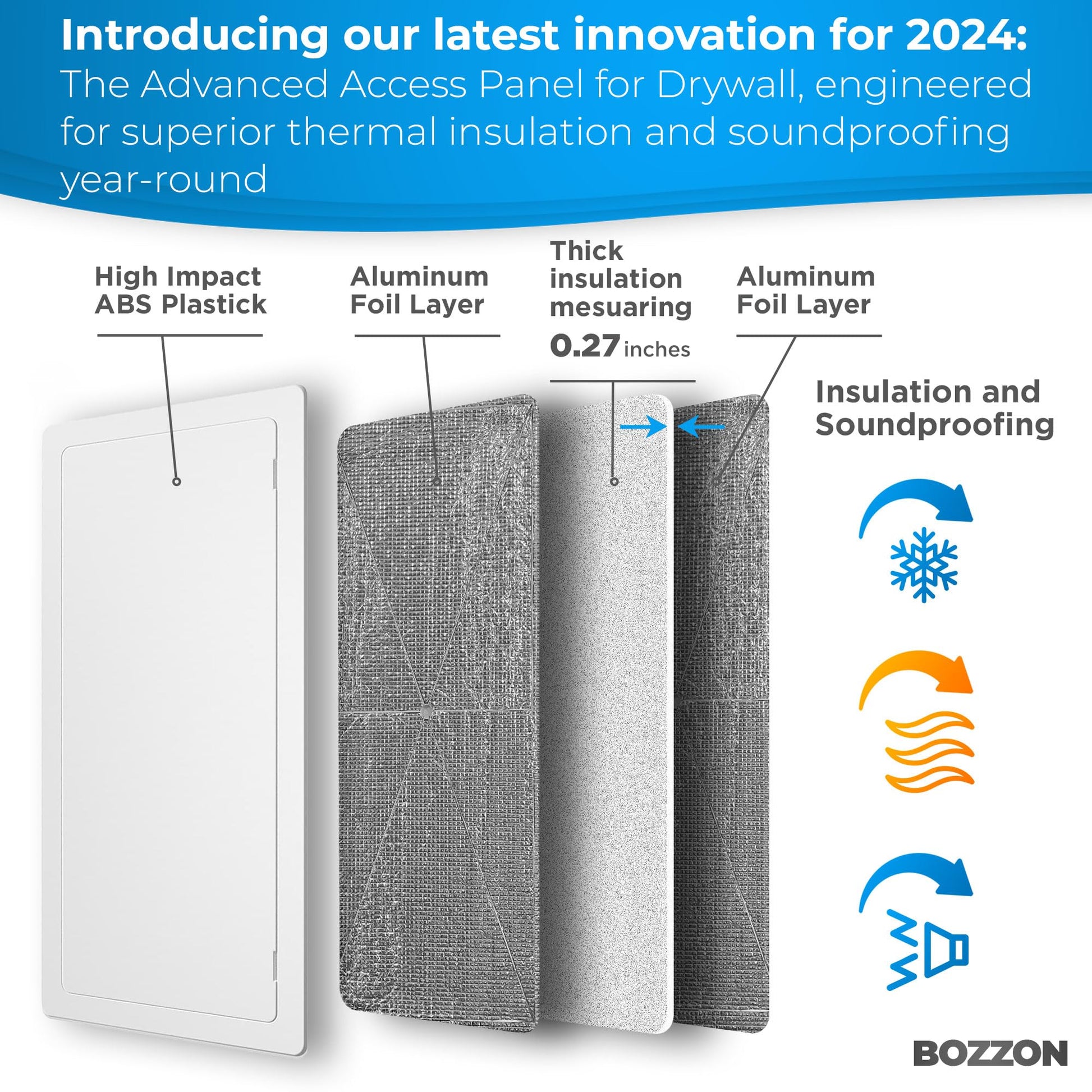 Bozzon plastic access panels are high-quality, durable, and suitable for installation in walls and ceilings. Their simple installation and ease of use make them perfect for drywall, plumbing, or electrical cover plates, ensuring 100% customer satisfaction.