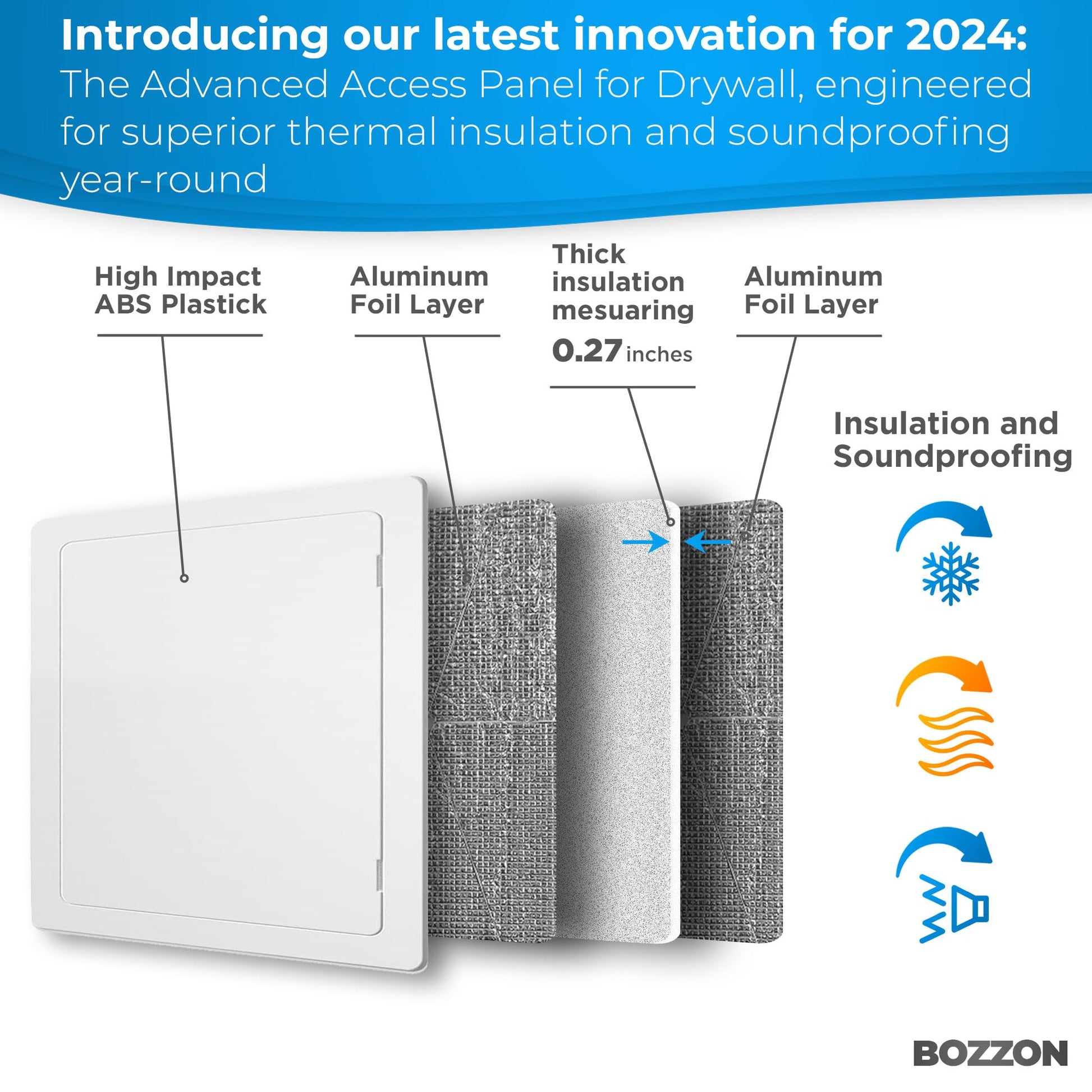 Bozzon plastic access panels are high-quality, durable, and suitable for both walls and ceilings. Their simple installation and ease of use make them perfect for drywall, plumbing, or electrical cover plates, ensuring 100% customer satisfaction.